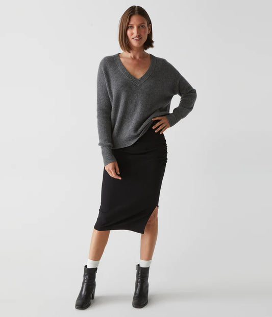 Michael Stars Rae Ribbed Skirt with Slit- Black