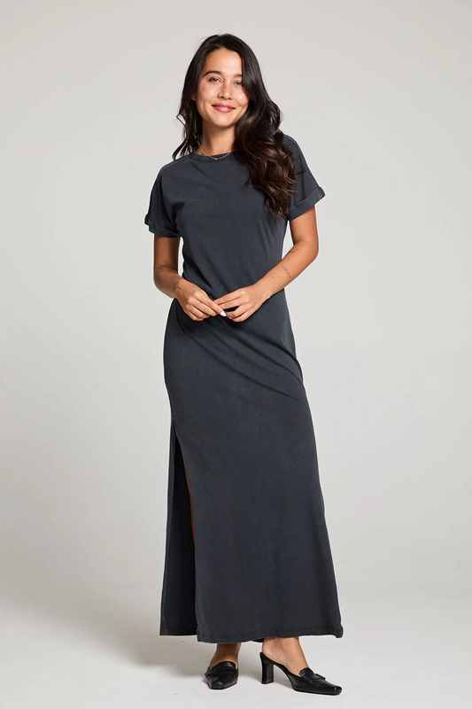 Michael Stars Calliope Power Shoulder Maxi Dress- Heather Grey
