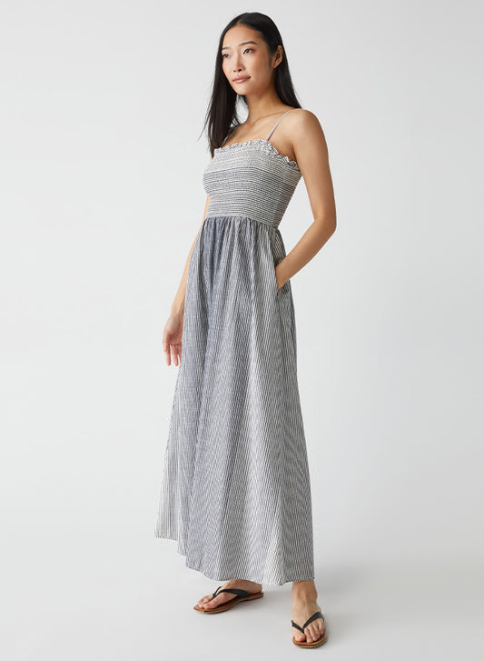 Michael Stars Leona Smocked Bodice Dress- Nocturnal Stripe