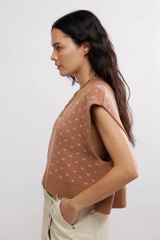 Free People Easy Street Pattern Vest- Cafe Blossom