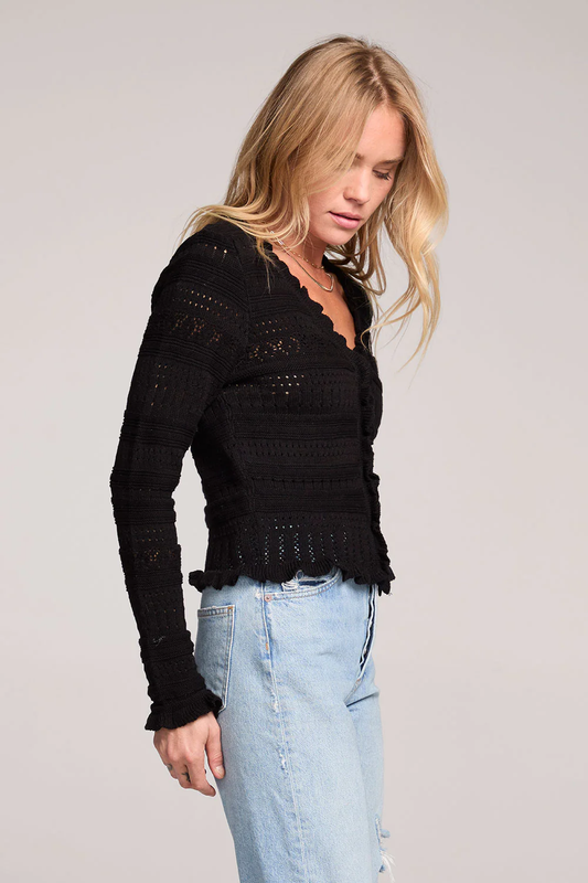 Michael Stars Isla V-Neck Ribbed Cardigan-Espresso