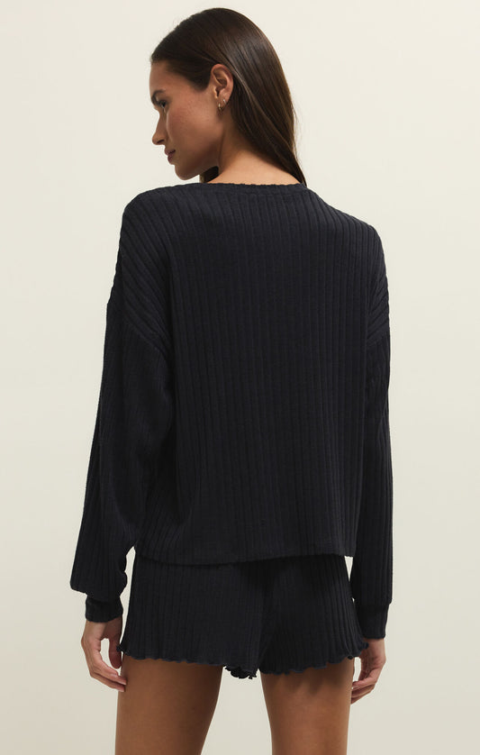 Z Supply Daydream Rib Long Sleeve Top- Black Sand