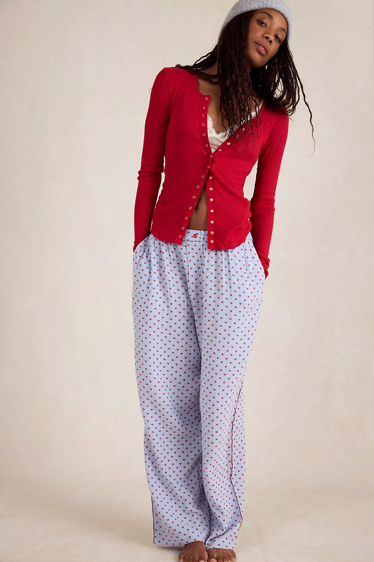 Dainty in heart-shaped dots, these adorable woven pants from Intimately feature an ultra-soft, textured cotton fabrication, contrast stitching details, and side pockets for a cozy, loungewear style you’ll reach for again and again.