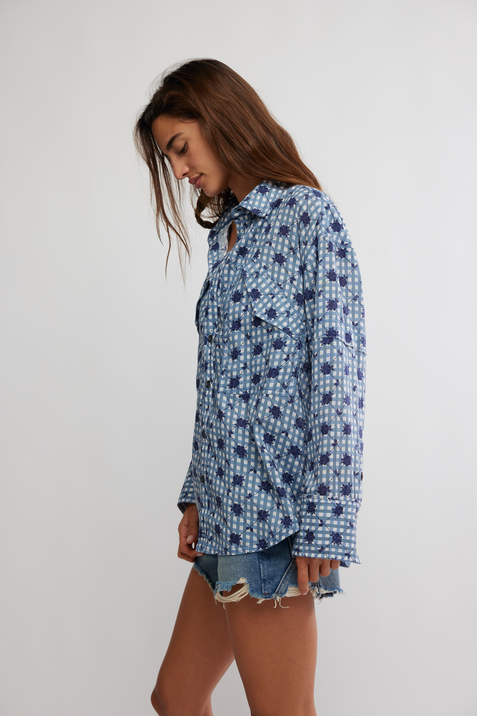 Camo with a twist! This shirt from our We The Free collection is featured in a cool cotton fabrication and oversized fit with oversized chest-pocket detailing and drop-shoulder sleeves.