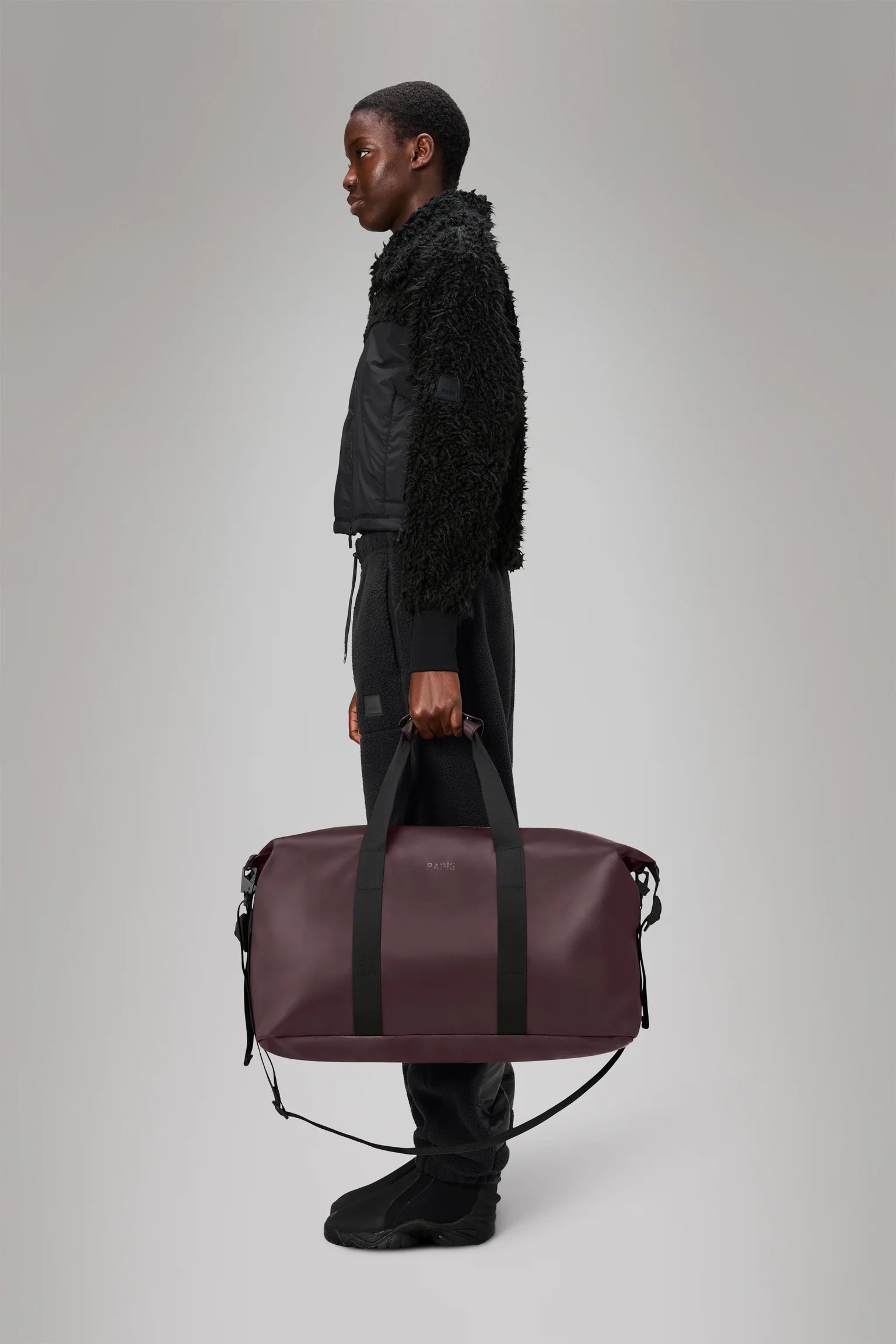 Hilo Weekend Bag is cut from Rains’ signature waterproof PU fabric, engineered for carrying strength, durability, and a smooth feel.