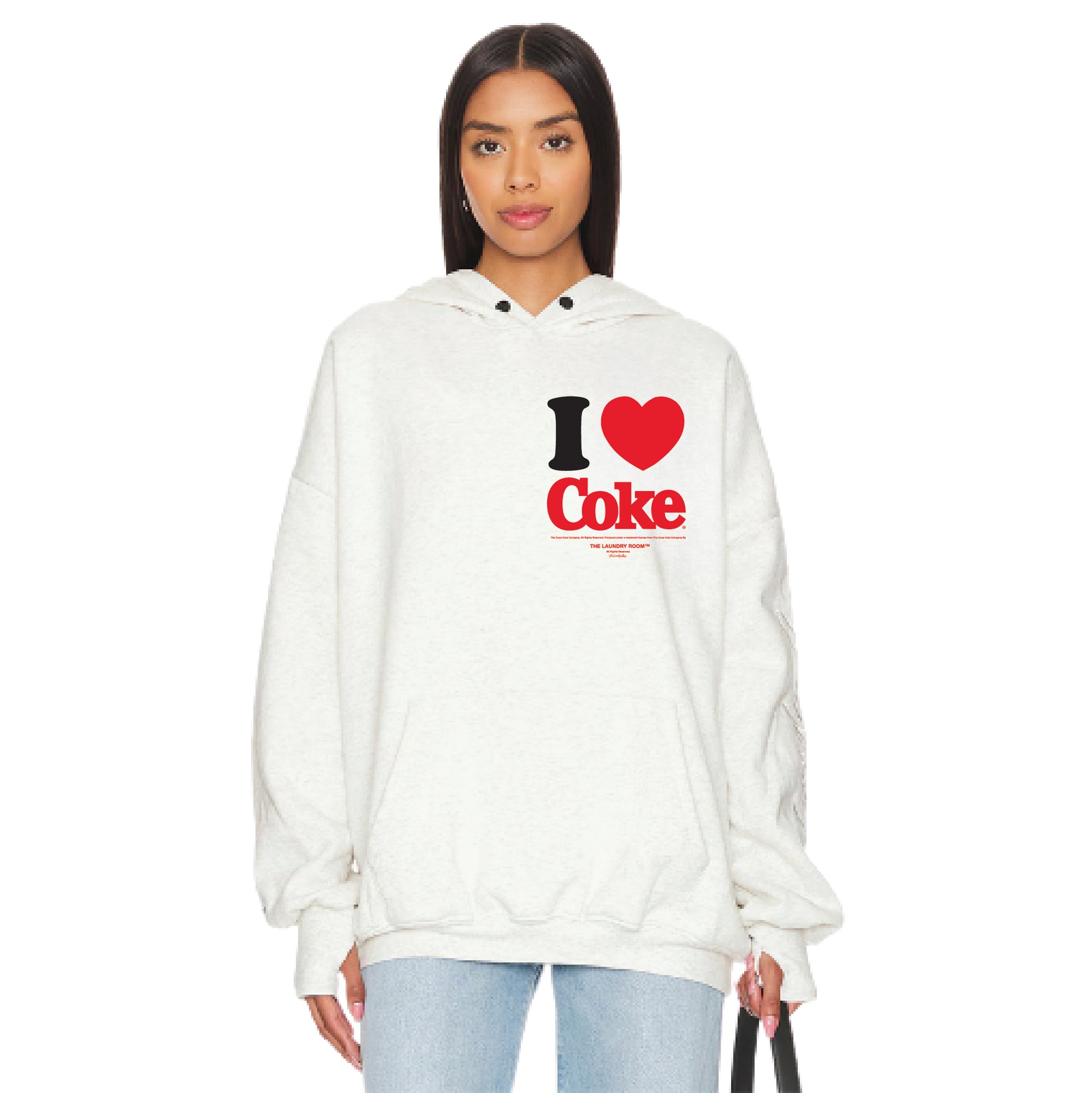Celebrate your love for a classic fizzy favorite with this playful "I Heart Coke" graphic print in our Valentine's collection. This fabric, made of 60% cotton and 40% polyester cotton candy fleece, offers a soft, cozy feel with a slight stretch, combining the comfort of cotton with the durability and resilience of polyester in a knitted design.